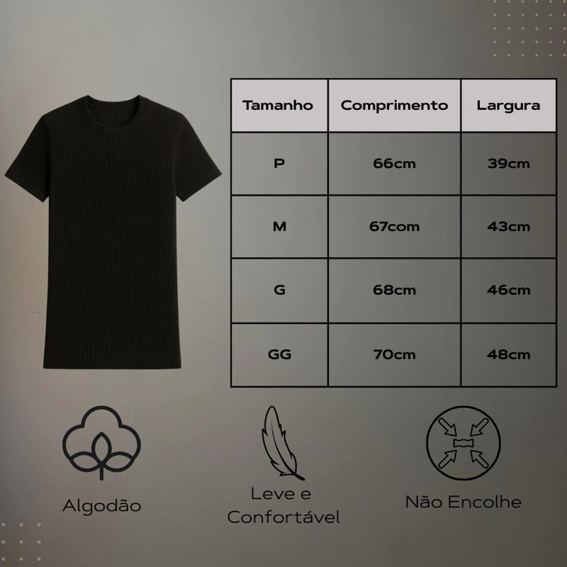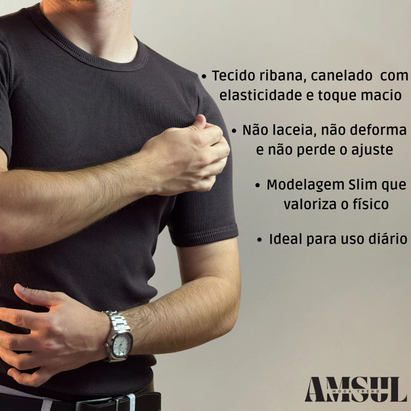 Camiseta canelada slim confeccionada em tecido ribana de alta qualidade, com 98% algodão e 2% elastano. Possui toque macio, excelente elasticidade e caimento ajustado ao corpo. O acabamento garante durabilidade mesmo após várias lavagens. Ideal para quem busca conforto e ótima vestibilidade no dia a dia, perfeita para qualquer ocasião.